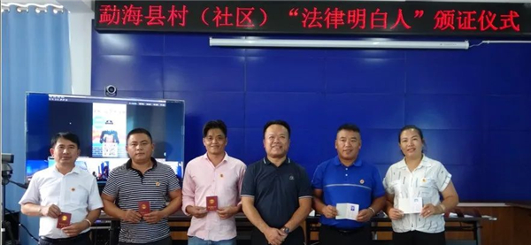 为全方位检验学员对此次培训内容的掌握程度,培训结束后,学员们在小程序上进行线上考试,考试内容涵盖培训课程中的法律法规知识。经线上监督、统计考试成绩,考试成绩合格的学员被正式确定为勐海县村(社区)“法律明白人”。考试结束后,为在主会场参与培训的学员颁发了证书和徽章。一批“法律明白人”正式持证上岗。
