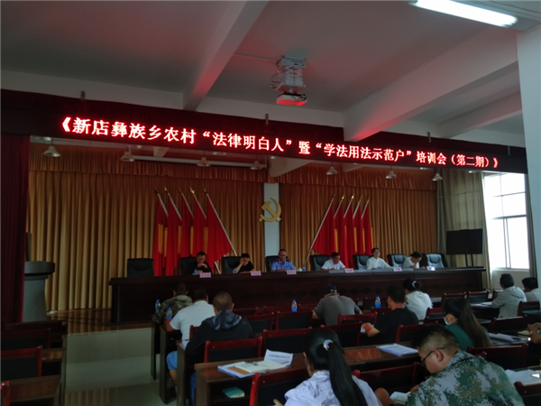 日前,丘北县新店乡党委政府召集乡党政班子成员、各中心站所负责人、村干部、驻村工作队等30余人参加了为期1天的“法律明白人”和“学法用法示范户”培训会。
