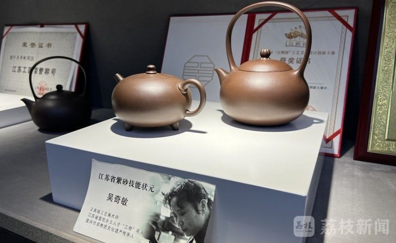 昔日迫于生计的抉择如今成了毕生捍卫的使命。华昱感慨之余,发愿要进一步攀登紫砂陶艺高峰:未来定要将筋纹器,花器在内的所有紫砂壶器型全都尝试一遍,达到师父华健的水平。这一决心亦有着师父吴奇敏的激励:2018年,年过半百的吴奇敏,在第四届江苏省技能状元大赛舞台上,同众多年轻后辈同台竞技,经过激烈的角逐,以作品《唐风提梁壶》问鼎魁首。这一不服输的劲头深深感染了华昱。