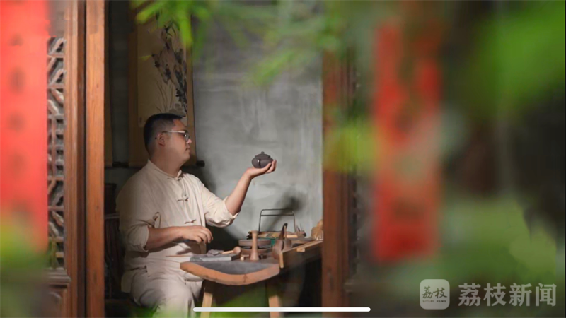 刚入行的华昱并未因年纪小而获得多少优待:每日朝七晚五,“光打泥片就打了3个多月”。一把紫砂壶,需历经选料、制坯、成型、装饰、烧制等几十道工序,“打泥片”正是制作紫砂壶坯的入门功底。“每天拍打至少50条,每条厚度控制在2.5-3毫米”,一开始华昱拿捏不好火候,总得仰仗游标卡尺把握厚薄,如今仅凭手感即可心中有底。
