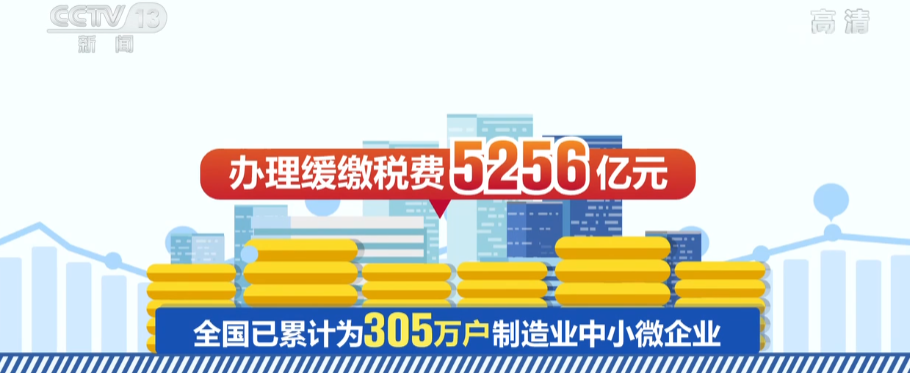 发布会上介绍说,缓缴税费政策实施以来,全国已累计为305万户制造业中小微企业办理缓缴税费5256亿元,相当于给企业带来一笔“无息贷款”,有效为企业“活血”“送暖”。
