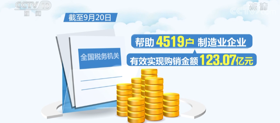 截至9月20日,全国税务机关累计收集原材料短缺企业信息8419户,匹配供应商42054户,帮助6186户企业有效实现购销金额171.78亿元。其中,帮助4519户制造业企业有效实现购销金额123.07亿元。