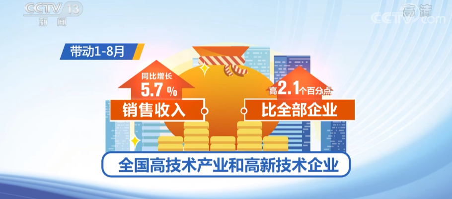 另外,高技术行业和高新技术企业累计新增减税降费及退税缓税缓费7618亿元,带动1—8月全国高技术产业和高新技术企业销售收入同比增长5.7%,比全部企业高2.1个百分点。