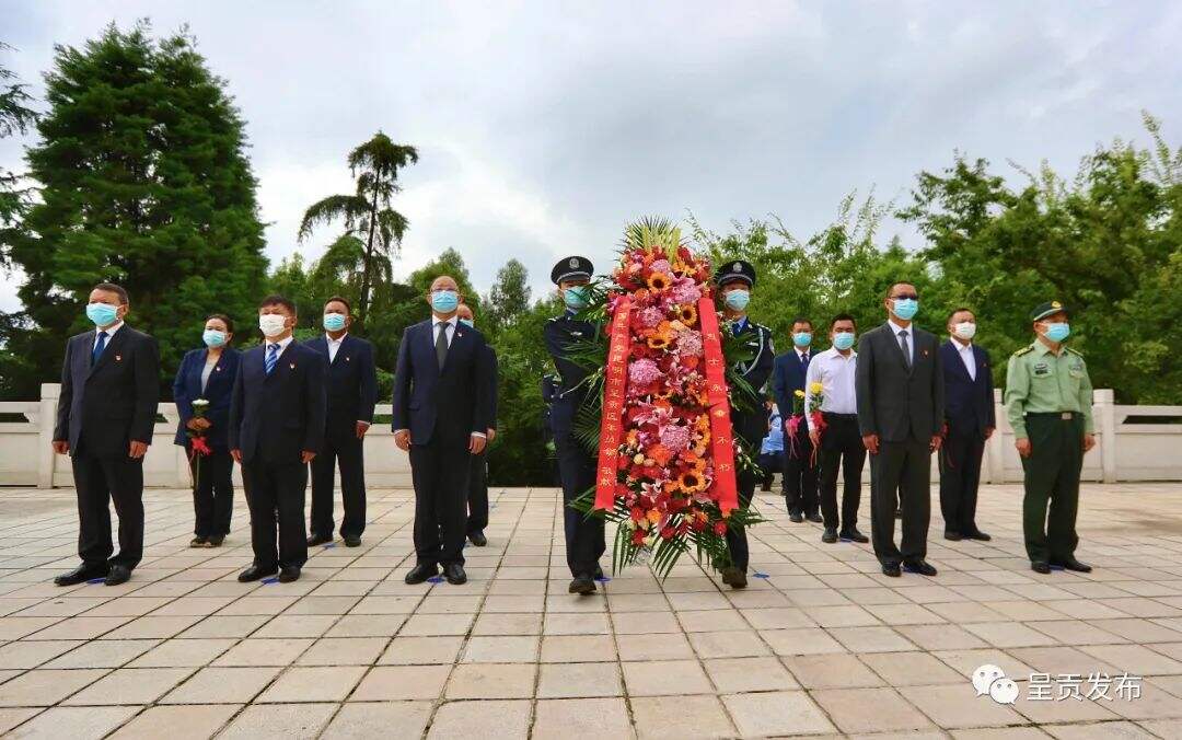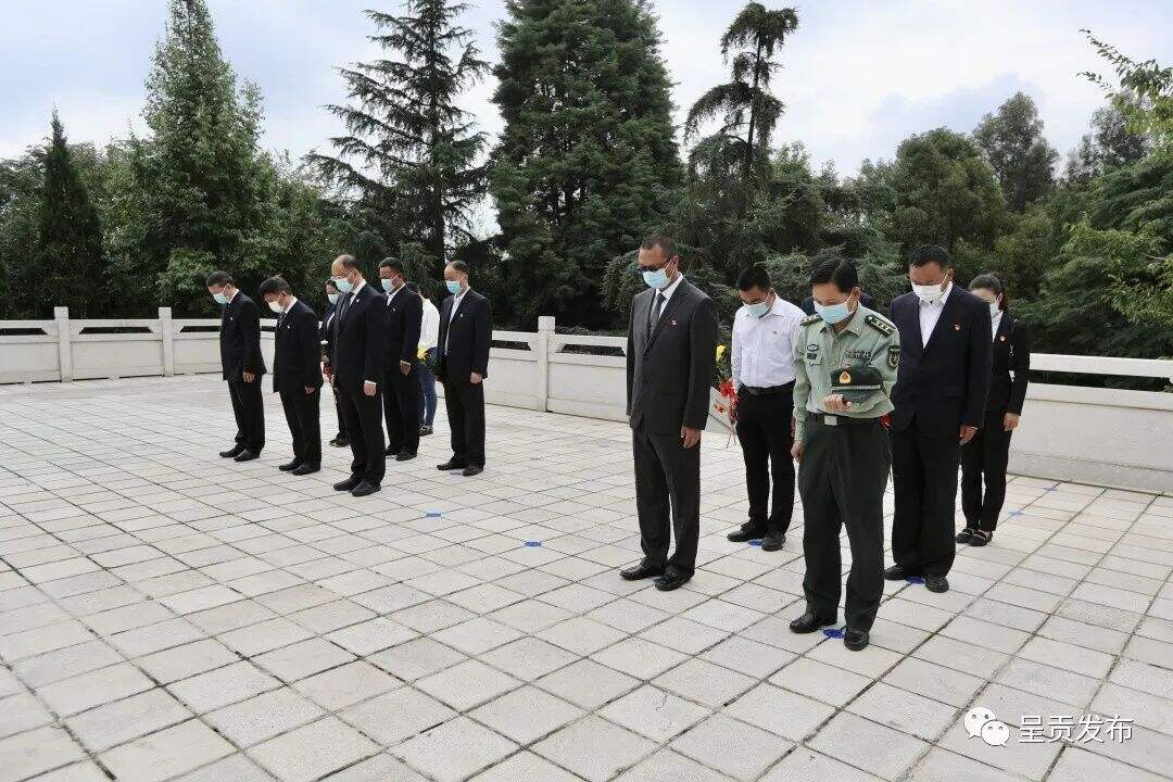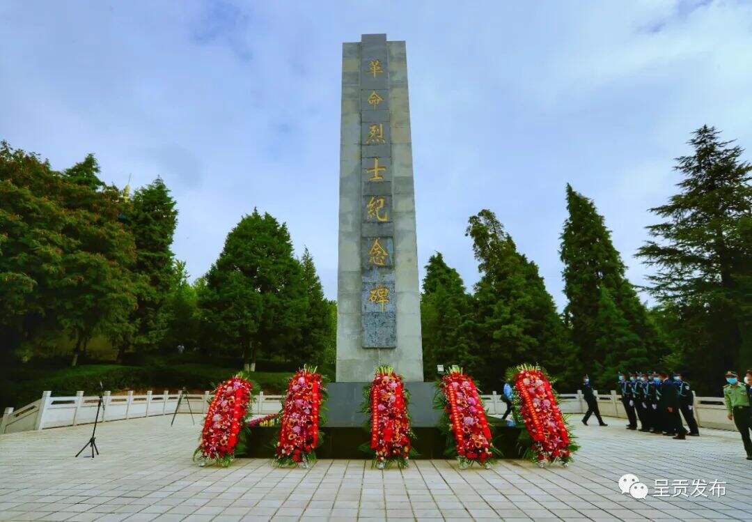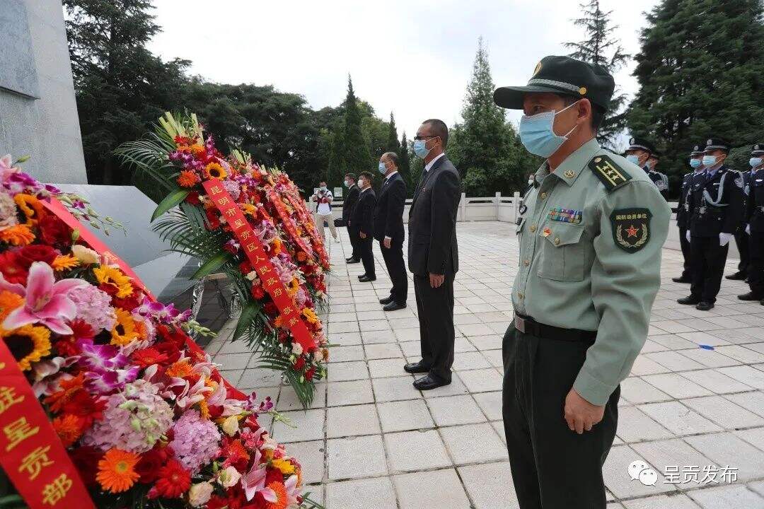 昆明市烈士纪念日系列活动呈贡区分会场在三台山向革命烈士纪念碑敬献花篮
