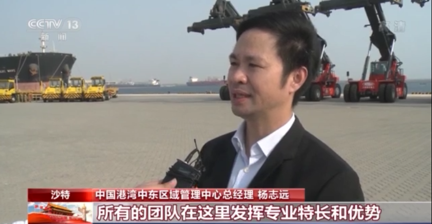 中国港湾中东区域管理中心总经理 杨志远:整个港口正式建成运行非常不容易,所有的团队在这里发挥专业特长和优势,引进了很多的中国技术和中国标准,包括很多的中国产品,建成了这座港口。