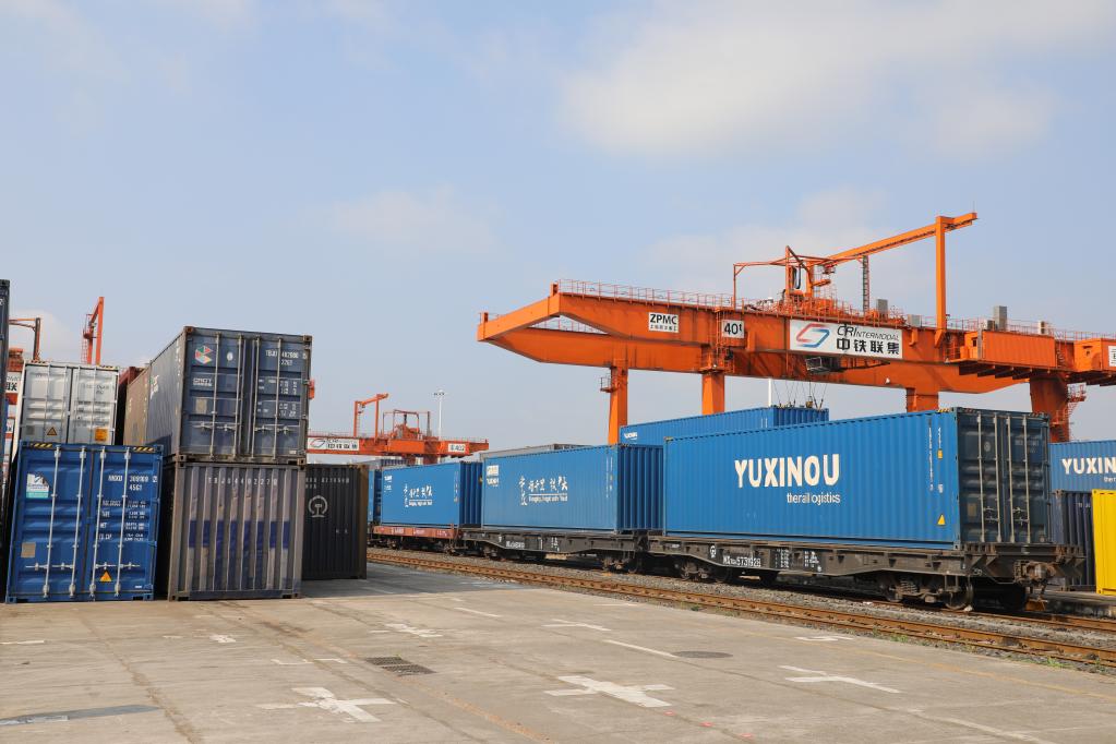 10月1日上午,一列中欧班列(重庆)正在装载中。(受访者供图)