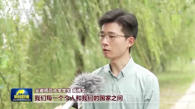 安徽师范大学学生 黄博文:(他)能够让我更加清晰认识到,我们每一个个人和我们的国家之间是密不可分的这样一种关系,这种深切的家国情怀、社会责任感,也会让我在未来的工作当中,能够担起新时代中国青年的使命和责任。