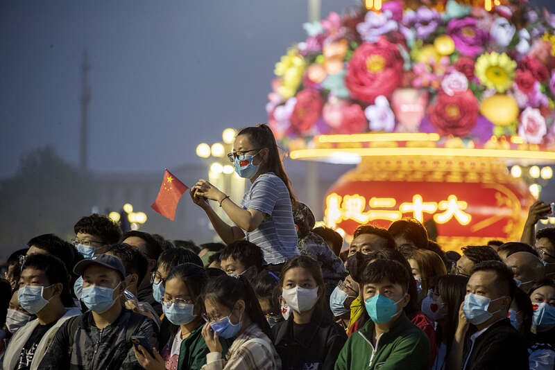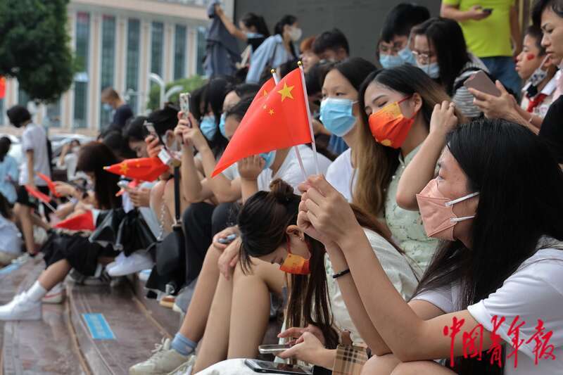 10月1日,北京天安门广场,年轻人们通宵排队等待升旗仪式开始。当日,为庆祝中华人民共和国成立73周年,天安门广场举行升旗仪式。人民视觉供图