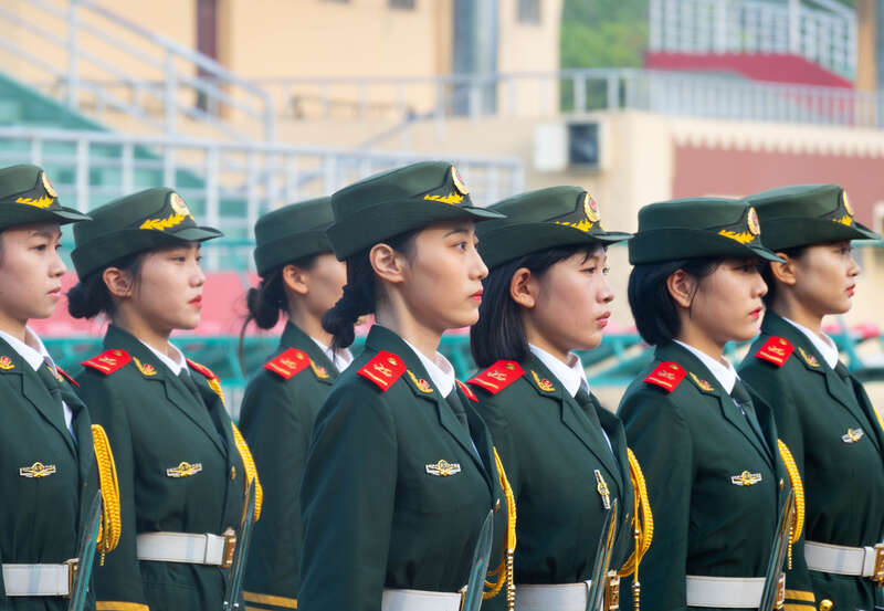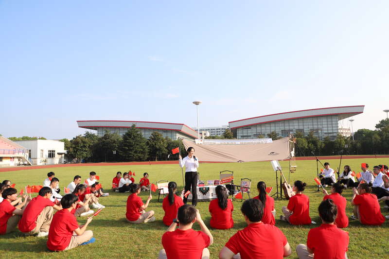 10月1日,浙江宁波财经学院的同学们在操场上,举行青春诗会,用诗句与歌声庆祝新中国73周年华诞。蔡万塔/摄