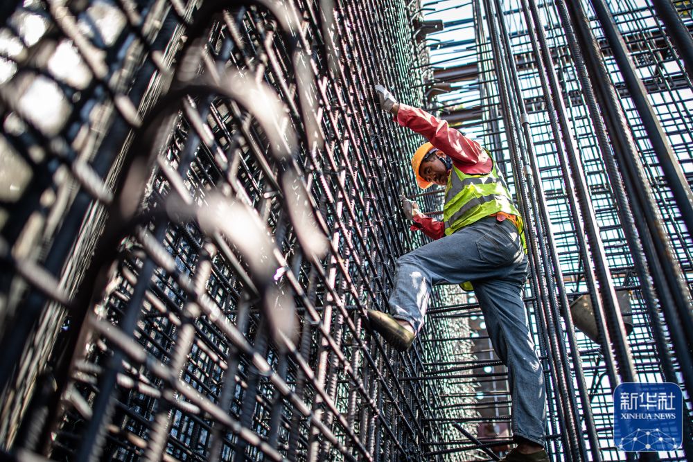 10月2日,中铁七局工人在沪渝蓉高铁武宜段龙泉河特大桥施工现场作业。新华社记者 肖艺九 摄