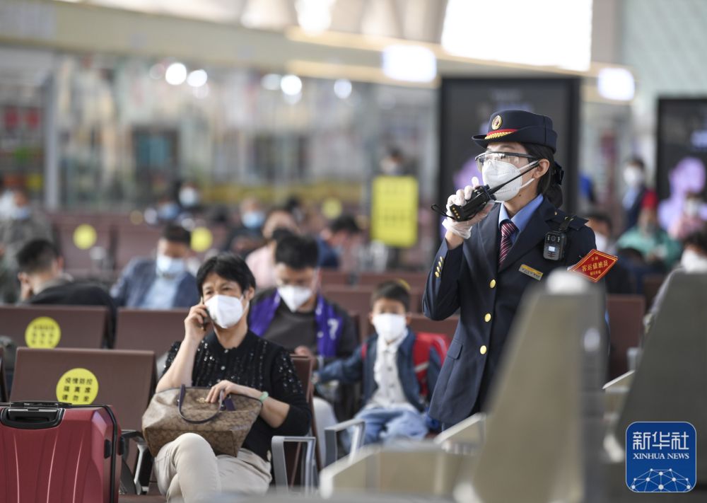 10月2日,中铁兰州局银川站客运员景思彤在检票口值班。新华社记者 冯开华 摄