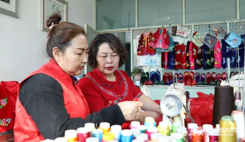 “我没有刺绣基础,李萍从图案设计、画草图到绣花手把手地教我。现在,我找到了一份乡邮政所的工作,工作之余还做刺绣,有两份收入,生活越过越好。”关淑芳说。