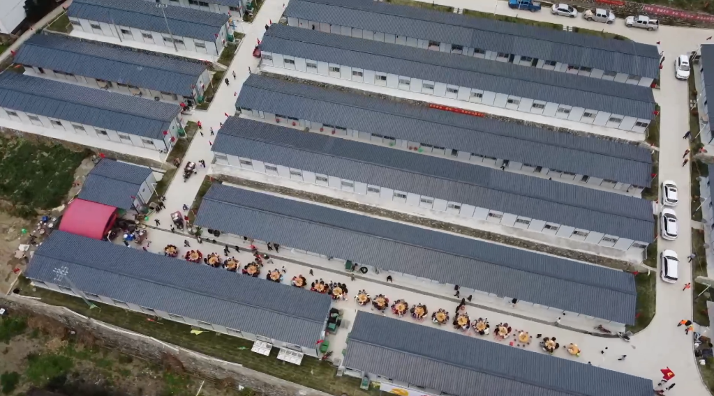 随着528套集中过渡安置房正式交付使用,四川泸定地震受灾群众陆续搬出应急帐篷,住进了崭新的板房。10月1日,他们在新的安置点欢度国庆节。