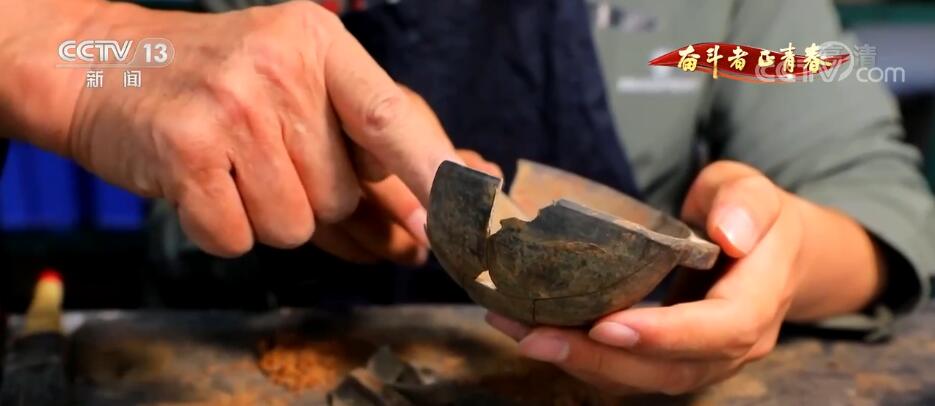 中国社会科学院考古研究所助理研究员 卢亚辉:这是汉墓里头刚出土的耳杯,是古人用来喝酒的,它修复难度比较大。比方说周边这些碎片儿,如果它修复的时候有一毫米的差距,剩下的这个三角残块儿就无法填充进去。