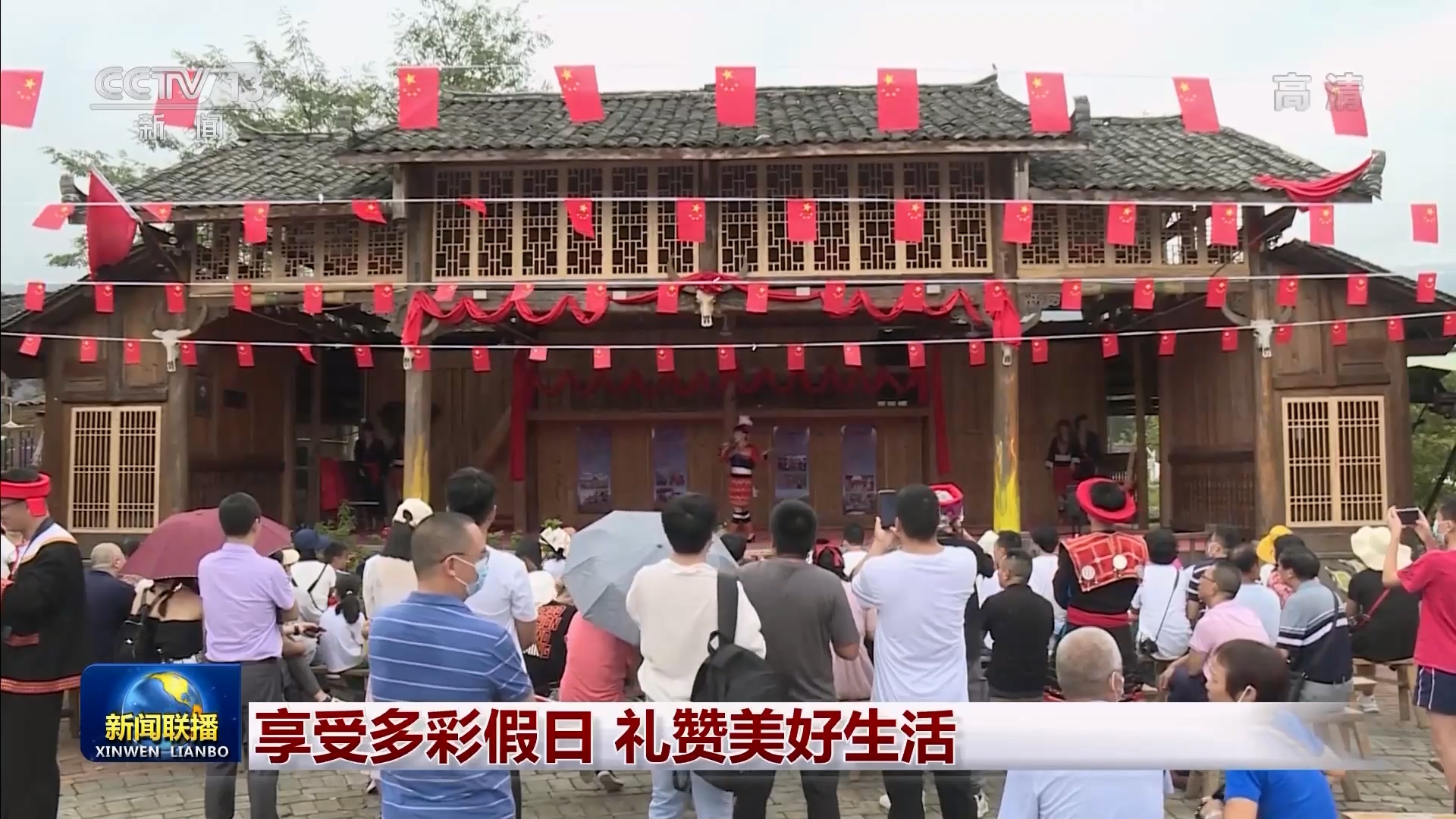 在云南丽江古城,大街小巷装扮一新,与满城芬芳相得益彰。在四川阆中古城,民俗表演精彩纷呈,一派欢乐喜庆。在广东连南的千年瑶寨,丰富多彩的活动轮番上演,人们用热情的歌舞祝福祖国,与游客一起分享丰收的喜悦。在江西龙南的客家围屋,伴随着喜庆的锣鼓声,乡亲们舞起长龙,表达对美好生活的憧憬。