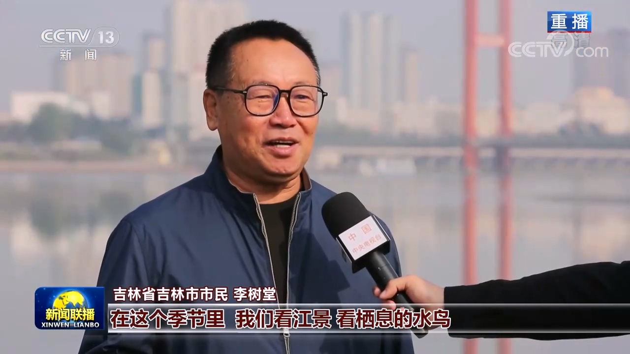 吉林省吉林市市民 李树堂:在这个季节里我们看江景,看栖息的水鸟,走在木栈道上,我们的心情非常愉悦。生态好了心情就好,日子就活得有滋有味。
