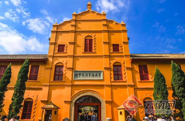 云南陆军讲武堂旧址,位于云南省昆明市翠湖西承华圃。其是一座极其标准的“走马转角楼”式的建筑,其东、南、北楼备两层均高10米左右,南楼上有一座阁台为检阅之用,4面楼房浑然连为一体,层高通透,错落有致,各长120米,周长480米,占地宽大,四面都有拱形门洞出入。