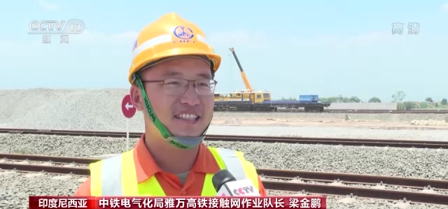 中铁电气化局雅万高铁接触网作业队长 梁金鹏:对我而言,以前感觉“一带一路”是一个名词,一个国家倡议,但现在,它就在我身边,是我最值得展示的招牌,是我最亮丽的底色。我们希望用自己的实际行动献礼新中国73周年华诞。