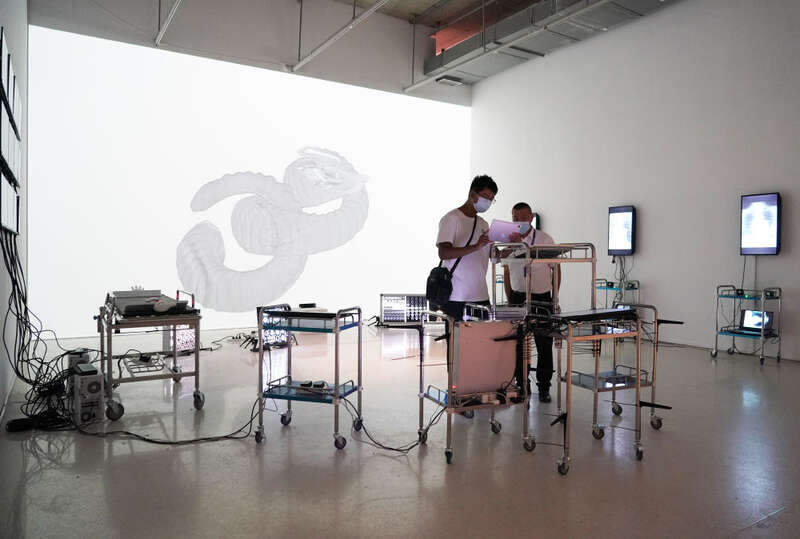 在北京时代美术馆,来自10余个国家和地区的80余位艺术家借助AR、VR、生态艺术、人工智能、CG技术等制作的40余件数字艺术品展陈,吸引了不少市民前来参观。