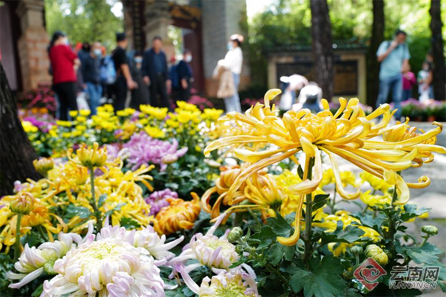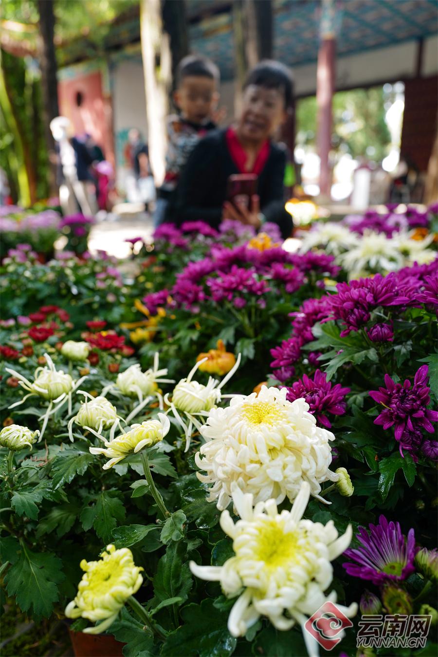 10月4日,昆明市金殿风景名胜区内,市民登高祈福,秋游赏菊。
