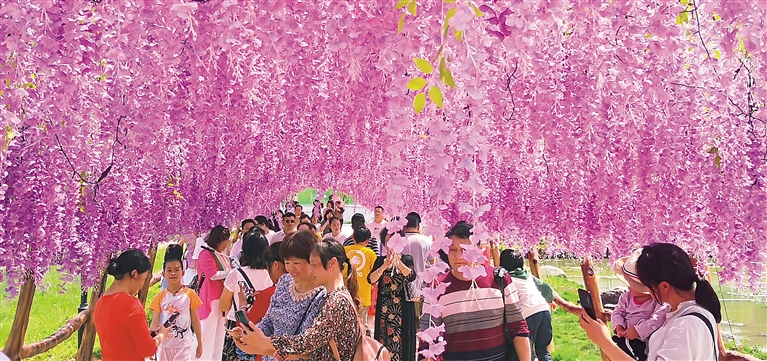 10月3日,湖南省永州市冷水滩区湖美田园景区,假日美景吸引大批游客前往观光,欢度国庆。纪丽萍摄(中经视觉)