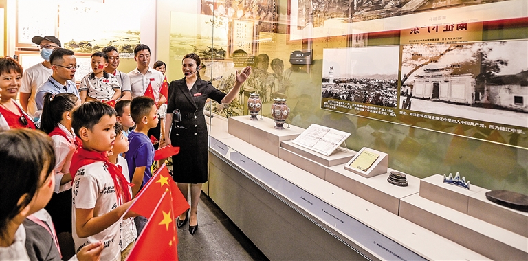 10月3日,南昌八一起义纪念馆讲解员为游客讲解革命故事。国庆假日,当地红色旅游景点备受市民青睐。涂 睿摄(中经视觉)