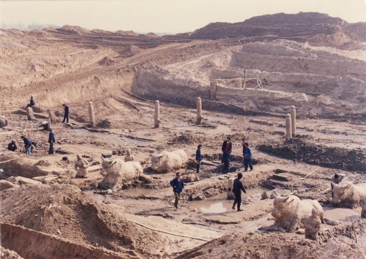 这是20世纪90年代初的挖掘现场。(资料图片,由蒲津渡遗址博物馆提供)