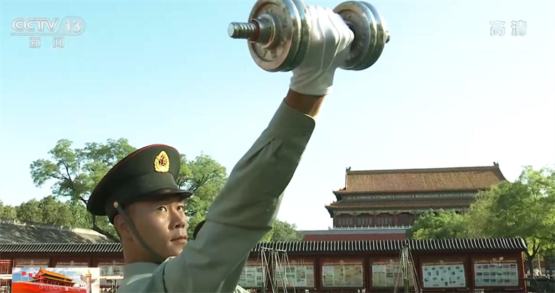 解放军仪仗大队国旗护卫队升旗手 张威:在休息之后,身体缓过来的时候,我再拿上哑铃去练的时候,反而感觉自己能使上劲,这就是负重训练的效果,增强自己的力量和肌肉的记忆,每次能做出来一样的动作。