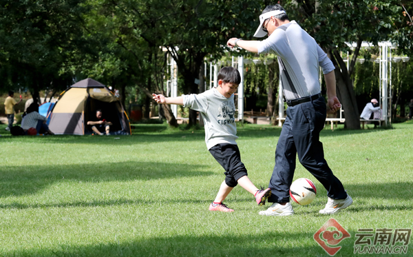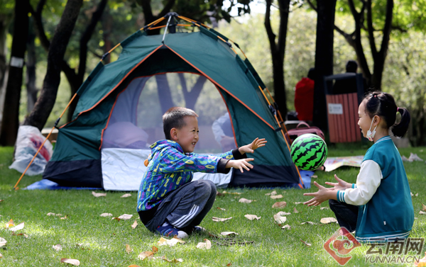 “十一”假日,秋日阳光明媚。在昆明西华公园,走出家门的春城市民在草地上搭起帐篷露营、在湖面上划船赏景游玩……游乐场中传出阵阵欢乐的笑声,处处呈现出亲子融融的愉悦场景。(云南网 记者杨峥)