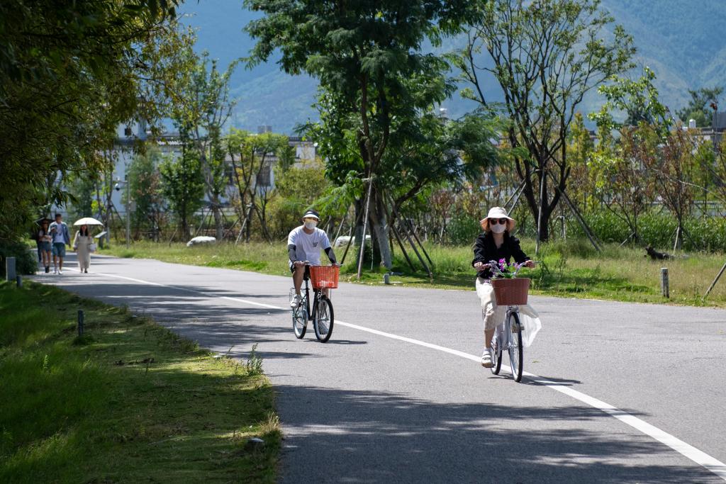 游客在洱海生态廊道上骑行(2022年9月27日摄)。新华社记者 陈欣波 摄