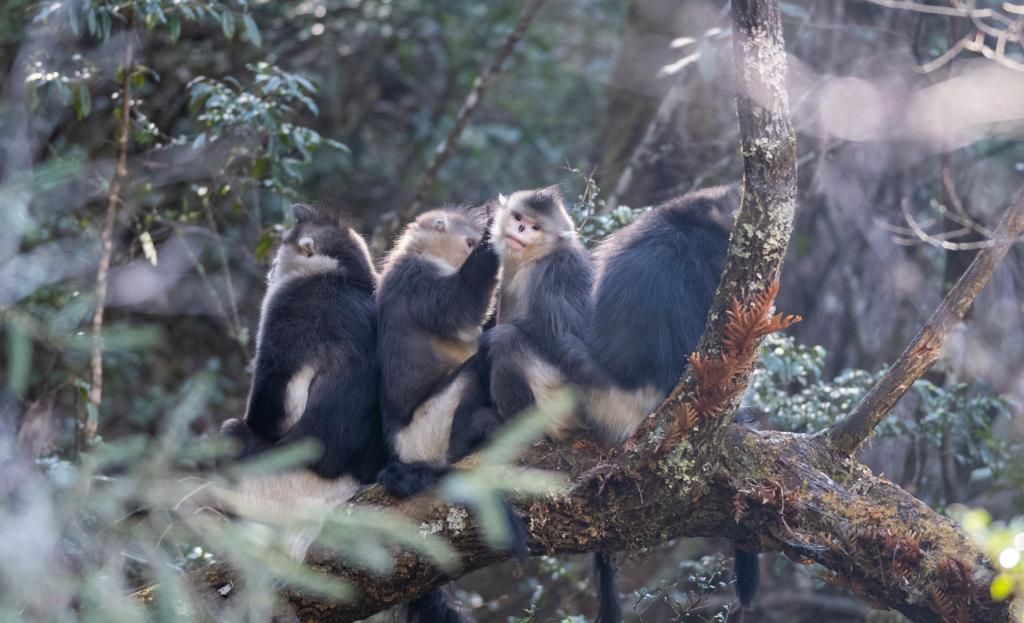 这是在云南白马雪山国家级自然保护区拍摄的滇金丝猴(2022年3月13日摄)。新华社记者 王冠森 摄