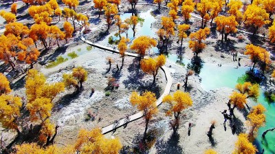 金秋时节,新疆沙雅县胡杨林迎来最佳观赏季。柳玉柱摄/光明图片