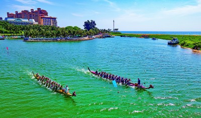 海南省琼海市博鳌镇在万泉河入海口举行龙舟赛活动。新华社发