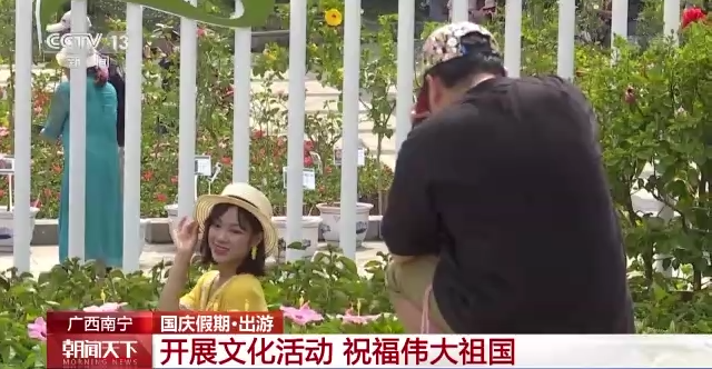 在广西南宁,国庆假期,赏花游、民俗游、夜景游受到市民青睐。在做好疫情防控的前提下,文化场所和休闲景区开展了主题鲜明各类文化活动,大家在欣赏中国传统文化魅力的同时,也感受到伟大祖国的繁荣昌盛。