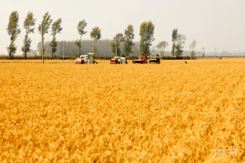 高标准农田上,收割机正在采收金秋新穗(央广网发 殷丽群 摄)