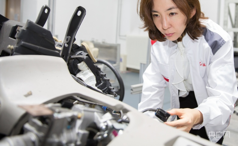 周时莹在对车辆进行整车电子功能检查(央广网发 中国一汽研发总院供图)
