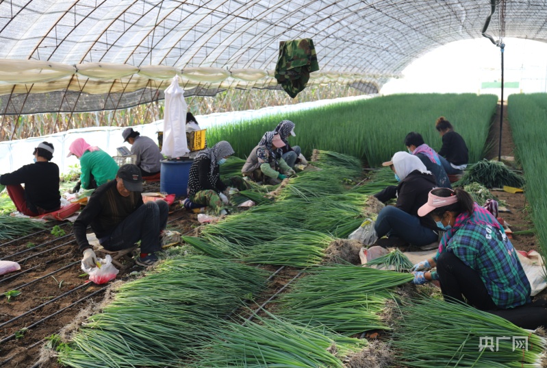 “我们要踏踏实实把香葱种好,把棚膜产业搞好,不辜负这个好时代。”三里堡子村村民分享着收获的喜悦。