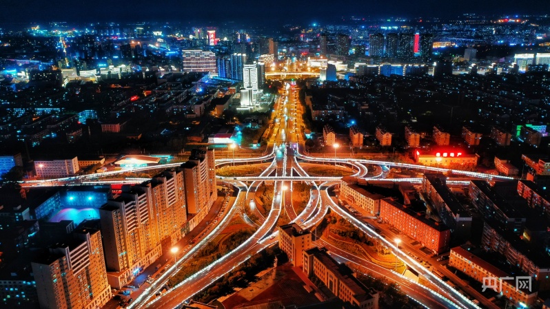 鸟瞰夜色下的长春西解放立交桥(央广网发 王强 摄)