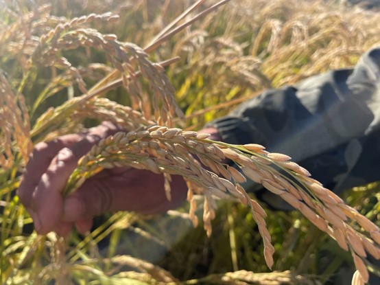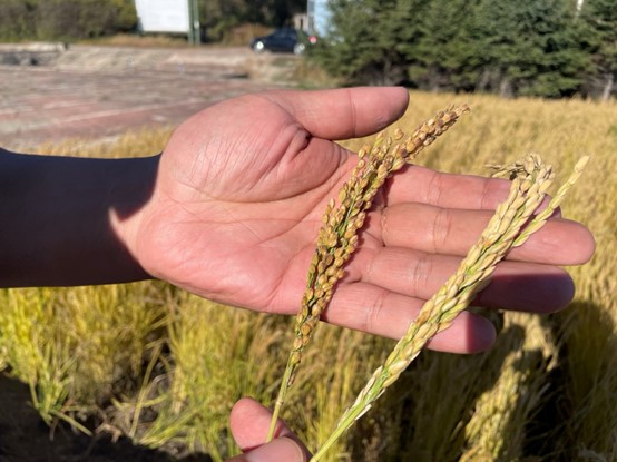 邢玉文亲手种下的稻花香12号稻穗饱满(总台央广记者韩雪莹 摄)