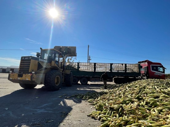 采摘好的玉米在农场整车装运、送往加工厂(总台央广记者韩雪莹 摄)