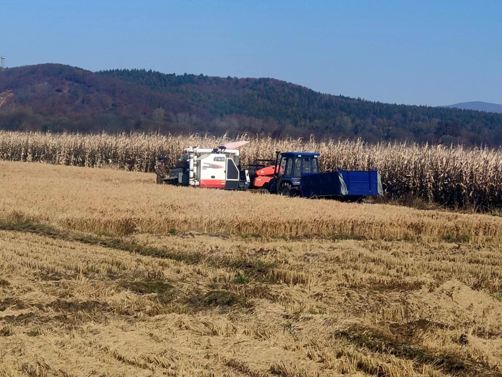 又是一个丰收年。10月5日,松花江农场开启稻谷首日收割。