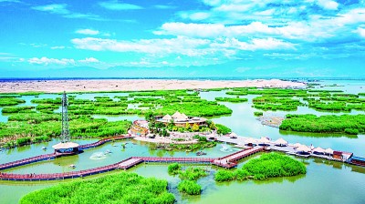 “一半金沙一半湖”的宁夏沙湖。资料图片