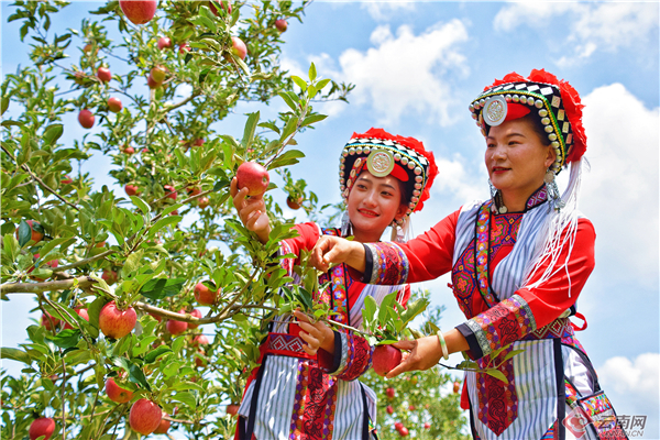 近年来,该镇以海泊村作示范引领,深入贯彻“绿水青山就是金山银山”的发展理念,带动全镇种植柑橘、石榴、火龙果、苹果等水果共计13.34万亩,使昔日的石漠化荒山变成了绿意盎然的“花果山”,罩上了生态“安全网”。