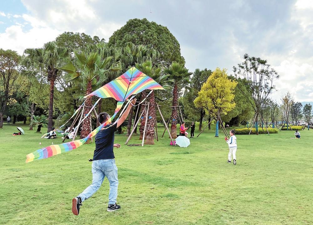 国庆假日,昆明市民走出家门,来到滇池边、公园内扎帐篷、放风筝,享受自然、放松身心。 云南日报记者 黄兴能 摄