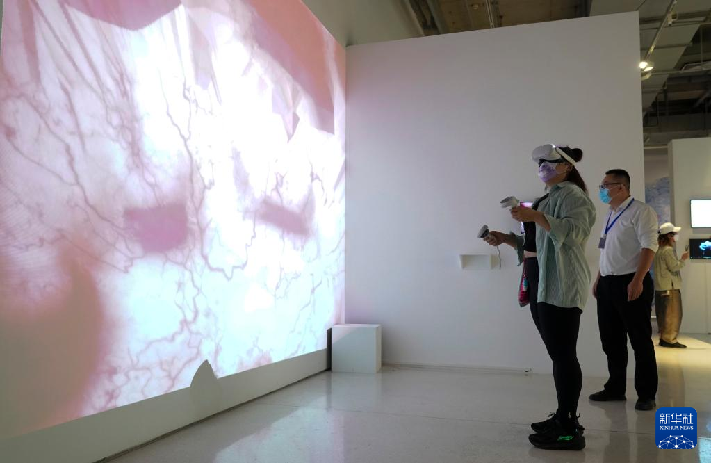 9月24日,参观者在2022亚洲数字艺术展上观看艺术作品。新华社记者 任超 摄