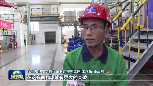 金川集团贵金属冶炼分厂提纯工序工序长 潘从明:在这方面我想能有更大的突破,包括技术指标、回收率、生产周期,把我们国家有限的资源利用好。(总台记者 刘龙 焦健 张吉瑞 甘肃台)