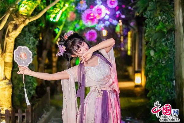 国潮遇见时尚,光影邂逅星空。古牌楼《踏鼓舞千年》、南湖秋月园《游园会》……国风夜周庄用超200场演出,打造出了姑苏繁华图——水乡梦影。“月明共此时”文创快闪街区通过7大主题展和9大快闪店,梦回明朝,尽显江南风情。21位抖音达人参与“舞动夜周庄”全民挑战赛,在花巷雨巷、南湖秋月园等地标性点位舞蹈演绎,截止当前# 舞动夜周庄抖音话题量已超2亿。逛“星星的故乡”花火市集,超20个美食摊位,植入周庄特色“万三捞卤”美食,营造出了“景中游,灯下购”的夜间消费场景。躲进水乡深处,边走边看、边赏边玩,购花灯、学剪纸、绘糖画,不负月色夜周庄。