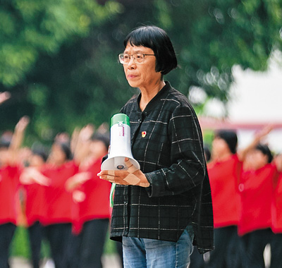 张桂梅在陪学生们做课间操。新华社记者 江文耀摄