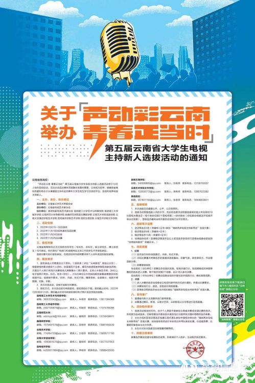 为发现和培养电视主持新人,搭建云南省高校热爱和有志于从事播音主持专业的青年大学生相互学习交流的平台,“声动彩云南 青春正当时”第五届云南省大学生电视主持新人选拔活动10月10日起正式报名启动。