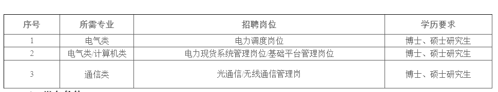 中国南方电网电力调度控制中心本次招聘面向国内外各大院校2023年毕业全日制硕士、博士研究生,以及符合暂缓就业政策的(暂缓就业期间在国内无社保缴费记录)全日制硕士、博士研究生。详细岗位信息见下图所示: